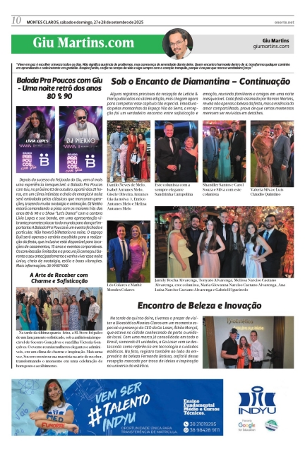 Depois do sucesso da Feijoada do Giu, vem aí mais uma experiência inesquecível: a Balada Pra Poucos com Giu, no próximo 03 de outubro, apartir das 21 horas, em um clima intimista e cheio de energia! A noite será embalada pelos clássicos que marcaram gerações, trazendo muita nostalgia e animação: DJ Nekko estará comandando a pista com os maiores hits dos anos 80 & 90 e o Show “Let’s Dance” com a cantora Lívia Lopes e sua banda, em uma apresentação vibrante promete colocar todo mundo para dançar! Importante: A Balada Pra Poucos é um evento fechado e particular. Não haverá bilheteria na noite. O espaço Bull será apenas o cenário escolhido para a realização da festa, que inclusive está disponível para locações de casamentos, 15 anos e eventos corporativos. Os convites são limitados e a procura já começou! Garanta o seu antecipadamente e venha viver essa noite única, cheia de nostalgia, estilo e boas vibrações. Mais informações: 38 991871000