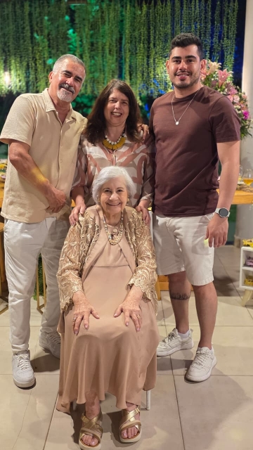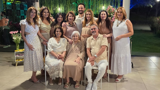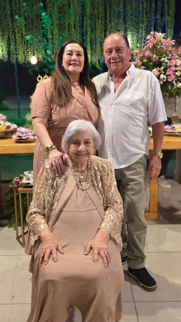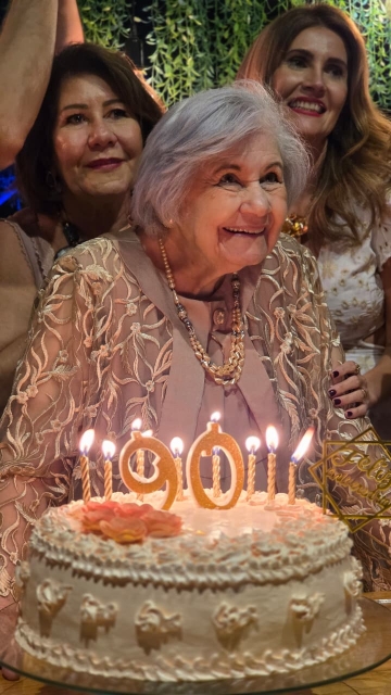ComentarNo último dia 23 de setembro, Montes Claros celebrou o aniversário de Dona Mena, que completou seus 90 bem vividos anos com muita graça e sabedoria. Para marcar a data com a grandeza merecida, no dia 27 de setembro familiares e amigos se reuniram em uma recepção emocionante, em clima de festa e encantamento. Cantora, artista plástica, florista e, acima de tudo, dona de um coração generoso, Dona Mena sempre se destacou por seu talento e por uma presença que cativa todos ao redor. A celebração ganhou toques especiais das decoradoras Mariangela Almeida, Fabiana Almeida e Mary Almeida, que criaram uma ambientação delicada e elegante. O Buffet Casa do Vovô assinou o sabor da noite, e a decoração floral trouxe ainda mais poesia, já que muitas flores foram confeccionadas pelas próprias mãos de Dona Mena e de sua filha Mariangela Almeida. Mãe de 12 filhos, sendo 8 mulheres e 4 homens, Dona Mena construiu uma história de amor, união e legado, que hoje se reflete nas novas gerações de sua família. Celebrar Dona Mena é celebrar a arte de viver plenamente, com graça, sabedoria e alegria. Uma vida que, aos 90 anos, continua a ser inspiração para todos nós. Parabéns Dona Mena!!