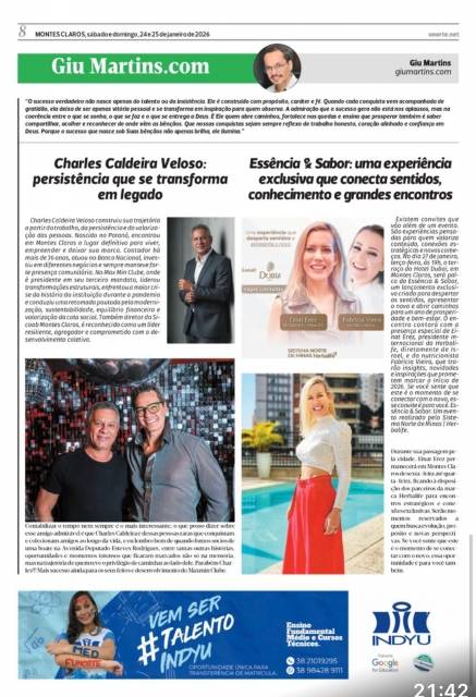 Charles Caldeira Veloso construiu sua trajetória a partir do trabalho, da persistência e da valorização das pessoas. Nascido no Paraná, encontrou em Montes Claros o lugar definitivo para viver, empreender e deixar sua marca. Contador há mais de 36 anos, atuou no Banco Nacional, investiu em diferentes negócios e sempre manteve forte presença comunitária. No Max Min Clube, onde é presidente em seu terceiro mandato, liderou transformações estruturais, enfrentou a maior crise da história da instituição durante a pandemia e conduziu uma retomada pautada pela modernização, sustentabilidade, equilíbrio financeiro e valorização da cota social. Também diretor da Sicoob Montes Claros, é reconhecido como um líder resiliente, agregador e comprometido com o desenvolvimento coletivo.