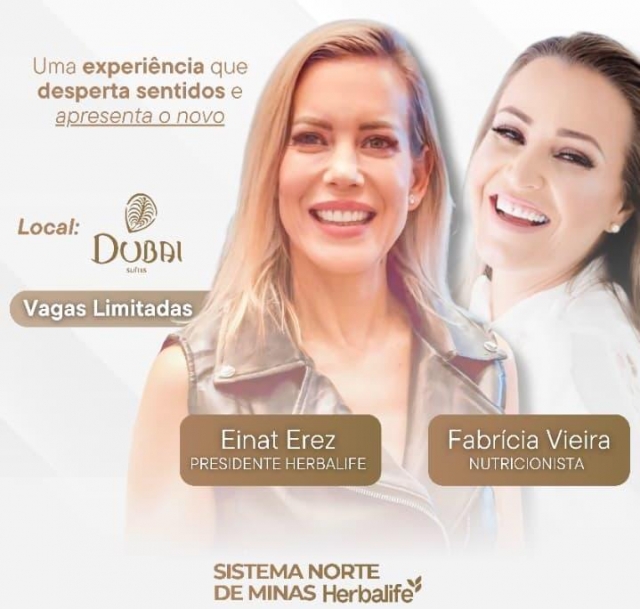 Existem convites que vão além de um evento. São experiências pensadas para quem valoriza conteúdo, conexões estratégicas e novos começos. No dia 27 de janeiro, terça-feira, às 19h, o terraço do Hotel Dubai, em Montes Claros, será palco do Essência & Sabor, um lançamento exclusivo criado para despertar os sentidos, apresentar o novo e abrir caminhos para um ano de prosperidade e bem-estar. O encontro contará com a presença especial de Einat Erez, presidente internacional da Herbalife, diretamente de Israel, e da nutricionista Fabrícia Vieira, que trarão insights, novidades e inspirações que prometem marcar o início de 2026. Se você sente que este é o momento de se conectar com o novo, esse convite é para você. Essência & Sabor. Um evento realizado pelo Sistema Norte de Minas | Herbalife.