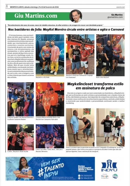 ComentarO Carnaval passou, mas nos bastidores da folia quem também viveu dias intensos foi MayKel, presença constante entre artistas e personalidades que movimentaram palcos, camarotes e eventos exclusivos. Convivendo de perto com nomes da música e do entretenimento, ele acompanhou a rotina agitada dos shows, ajustes de figurinos e encontros que só o backstage revela. Entre risos, correria e produções de última hora, MayKel reforçou sua posição como profissional de confiança no dia a dia de quem vive sob os holofotes. Mais do que circular entre celebridades, sua atuação nos bastidores mostra que o reconhecimento vem justamente dessa proximidade com a arte, com a imagem e com o ritmo intenso que move o universo dos artistas.
