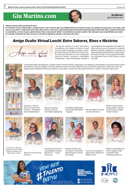 ComentarE quando eu penso em tudo isso, é impossível não pensar na família. Na mesa simples ou farta, mas sempre cheia de significado. No abraço demorado, no olhar que diz mais do que mil palavras, no silêncio confortável de quem já viveu muitas histórias juntos. Hoje, minha coluna é ilustrada por uma foto dos meus pais. Eles representam a minha história, mas também simbolizam cada família montesclarense, cada lar do nosso Norte de Minas que fecha mais um ciclo com fé, coragem e esperança. Porque aqui a gente aprende cedo que família não é só laço de sangue. É cuidado, é presença, é estar junto mesmo quando tudo parece difícil. É dividir o pão, a luta, a alegria e a saudade. Que esta virada de ano encontre cada família de Montes Claros reunida em torno do que realmente importa. Que não falte amor, que não falte saúde, que não falte união. Que 2025 chegue como um sopro de leveza, trazendo realizações, reconciliações, novas oportunidades e muitos motivos para agradecer. Que Deus abençoe cada casa, cada coração e cada sonho que nasce nesta noite especial. E que o próximo ano seja generoso com todos nós.