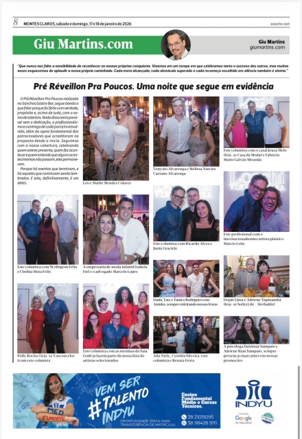 ComentarO Pré Réveillon Pra Poucos realizado no Sanchos Gastro Bar, segue dando o que falar porque foi feito com verdade, propósito e, acima de tudo, com a soma de talentos. Nada disso seria possível sem a dedicação, o profissionalismo e a entrega de cada parceiro envolvido, além do apoio fundamental dos patrocinadores que acreditaram na proposta desde o início. Seguimos com a nossa cobertura, celebrando quem esteve presente, quem fez acontecer e quem entende que alguns acontecimentos não passam, eles permanecem.