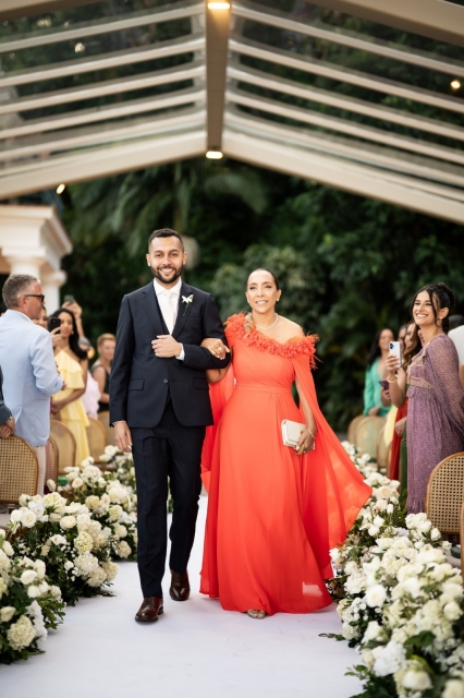 João Victor Martins (leia-se Vagari - Agência de Viagens e Experiências) com sua mãe Raquel Martins de Oliveira e Souza abriram o cortejo elegantemente