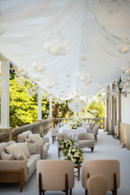 Um dos elegantes ambientes criados para receber os familiares dos noivos e convidados na Mansão Alvite