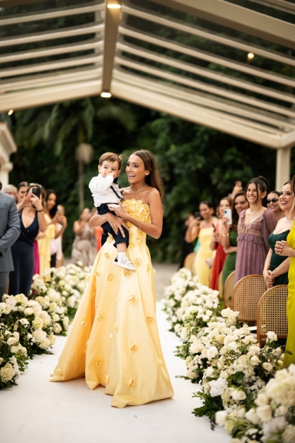 Ana Luiza Martins quando entrou com o Gabriel que levou as alianças até os seus pais